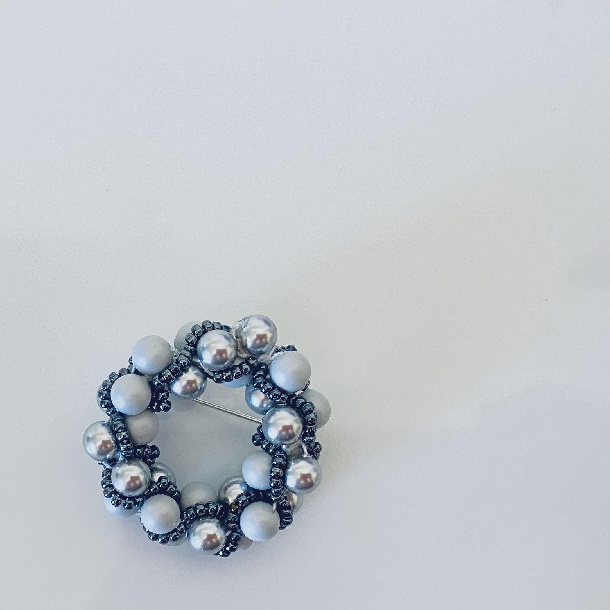 Swarovski Pearl crochet Brooch Wreath shaped.