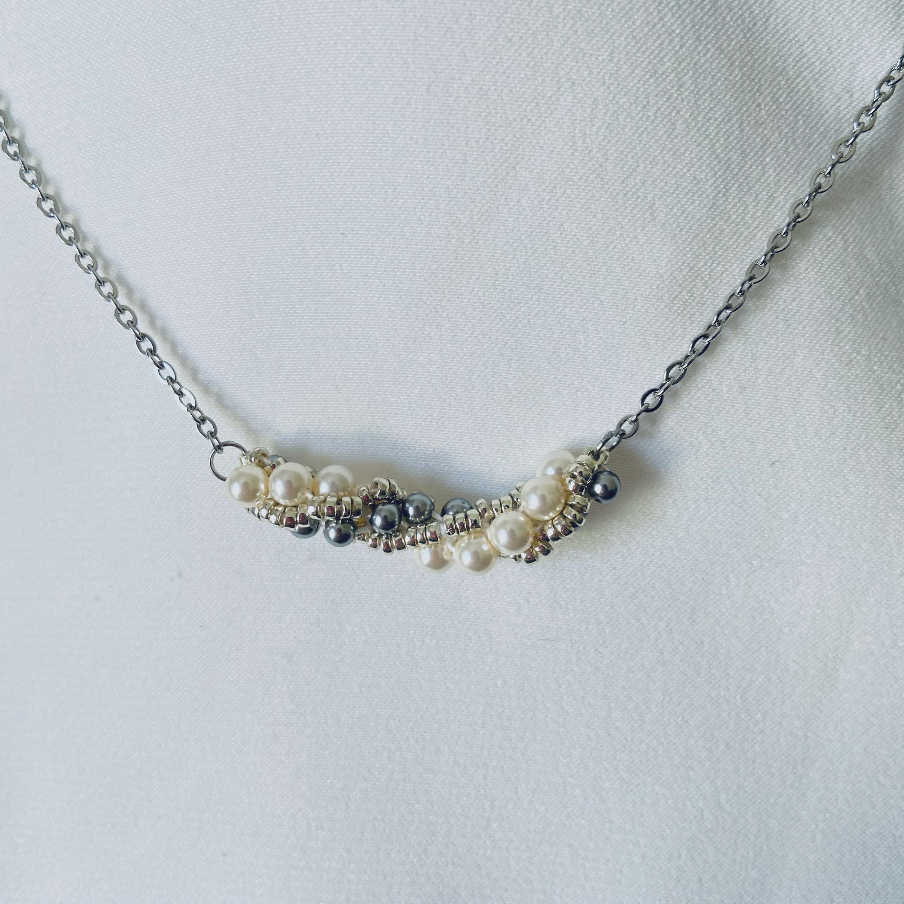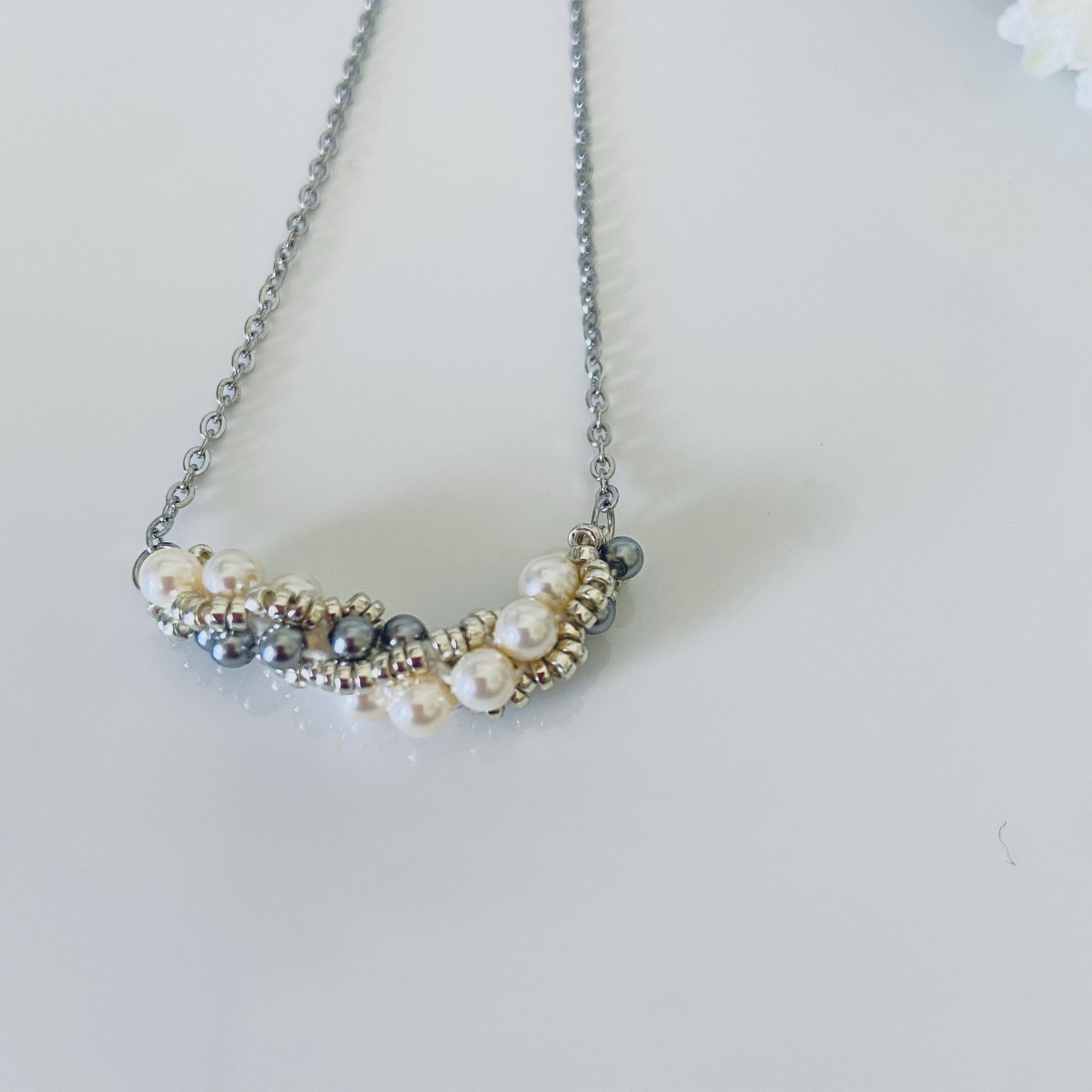 The gorgeous necklace is made with Swarovski Pearl and Japanese MIYUKI seed beads.